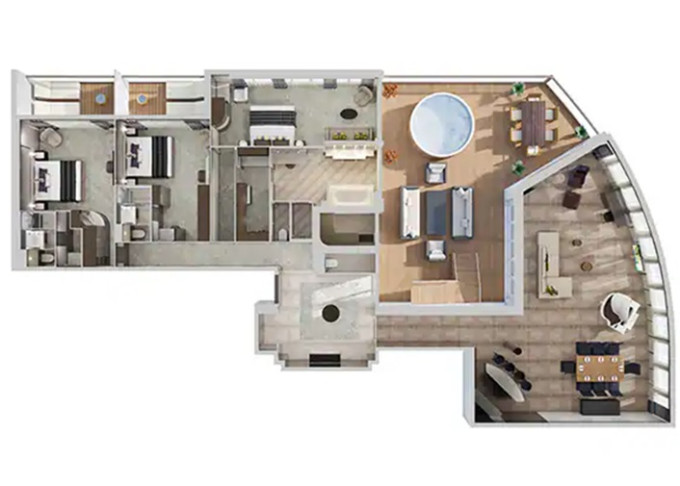 | H1 - The Haven Garden Villa - 3 spálne 395 m² / balkón 155 m². 14. paluba - stred. Max 8 osôb. Výhody The Haven. | 36 590 € 18 295 € za osobu |