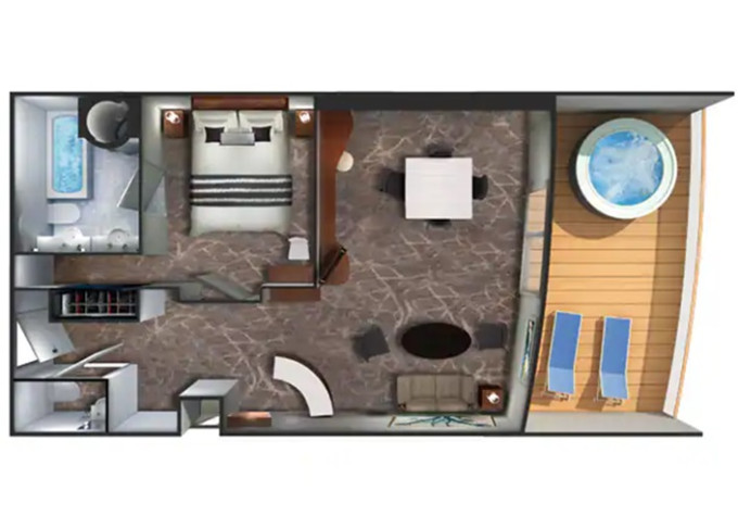 | SA - Owner's Suite 77 m² / balkón 32 m². Vírivka. 8/9. paluba - vpredu. Max 5 osôb. Výhody Suite. | 14 148 € 7 074 € za osobu |