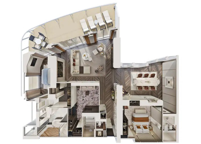 | H2 - The Haven Deluxe Owner's Suite 197 m² / balkón 45 m². 18. paluba vpredu. Max 6 osôb. Výhody The Haven. | 19 756 € 9 878 € za osobu |
