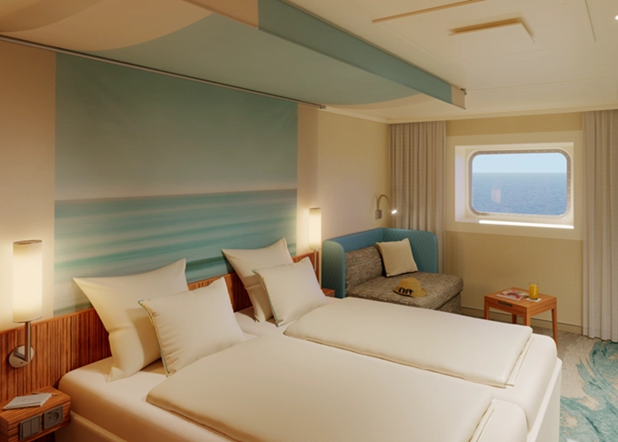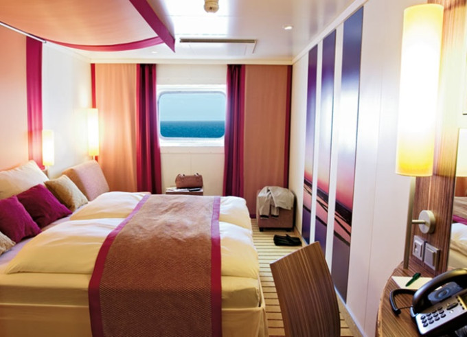 | CA - Vonkajšia kajuta PREMIUM / obmedzený výhľad 14-16,5 m². Neotvárateľné okno / obmedzený výhľad. 6. paluba. Max 2 osoby. Cenový model Premium. | 1 580 € 790 € za osobu |