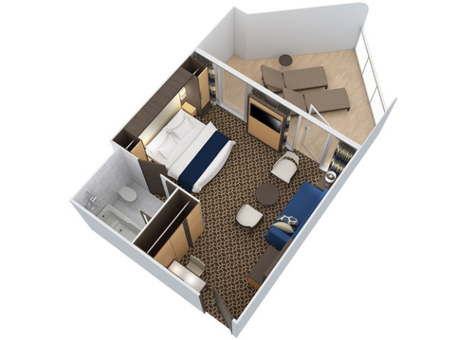 | 1U - Vnútorná kajuta s virtuálnym balkónom 15 m². Obrazovka veľkosti balkónových dverí s premietaným výhľadom. Centrálne umiestnenie. Max 3-4 osoby. | 2 250 € 750 € za osobu | ||