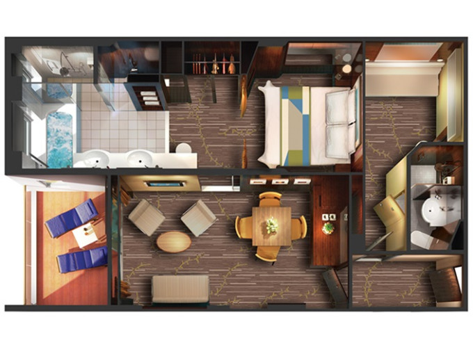 | S6 - Deluxe Owner's Suite 61-68 m². Celoplošné neotvárateľné okná. 12. paluba - vpredu. Max 4-6 osôb. Výhody Suite. | 6 472 € 3 236 € za osobu |