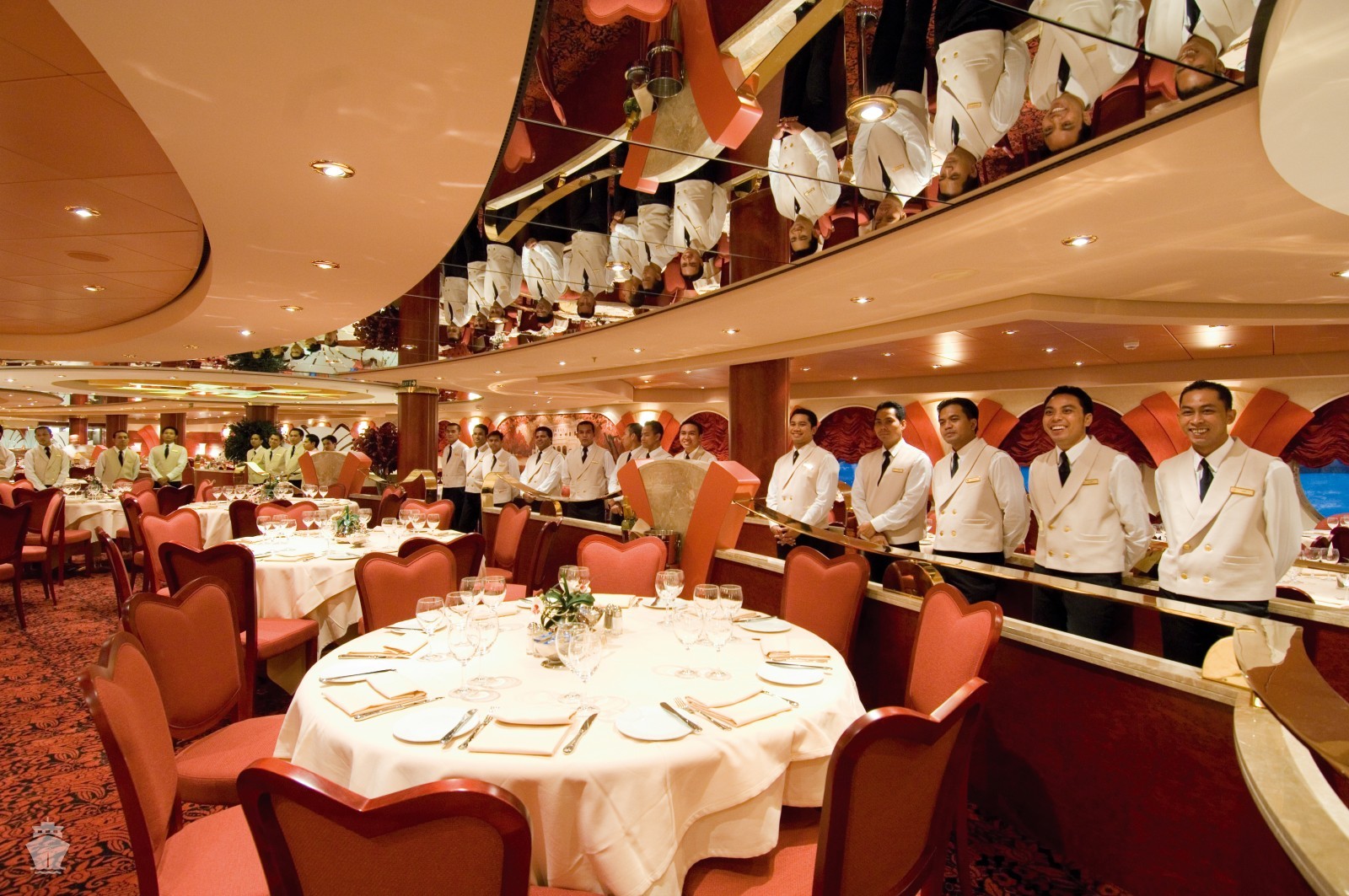 Vila Borghese - (5. paluba) s kapacitou 720 hostí. Otvorená ako voľné sedenie na raňajky 7:30-9:30 a obed 12:00-14:00. Pri večeri je zasadací poriadok a turnusy o 18:15 a 20:30.
