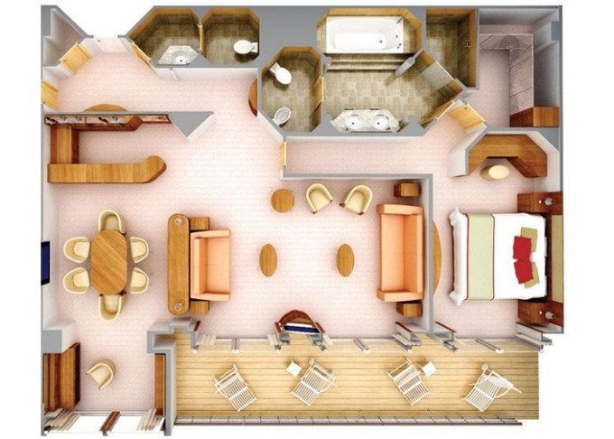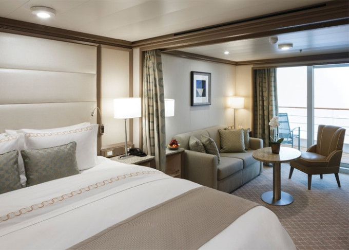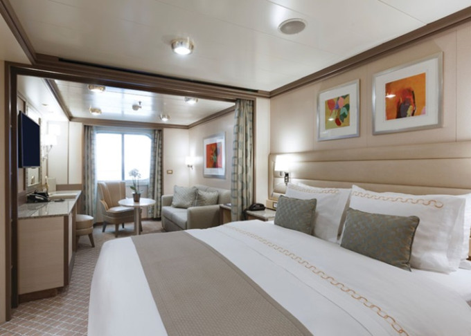 | R1 - Royal Suite 1 92 m² (vrátane balkóna 12 m²), Spálňa s obývacou a jedálenskou časťou. 7. paluba vpredu. Max 3 osoby. | 52 800 € 17 600 € za osobu |