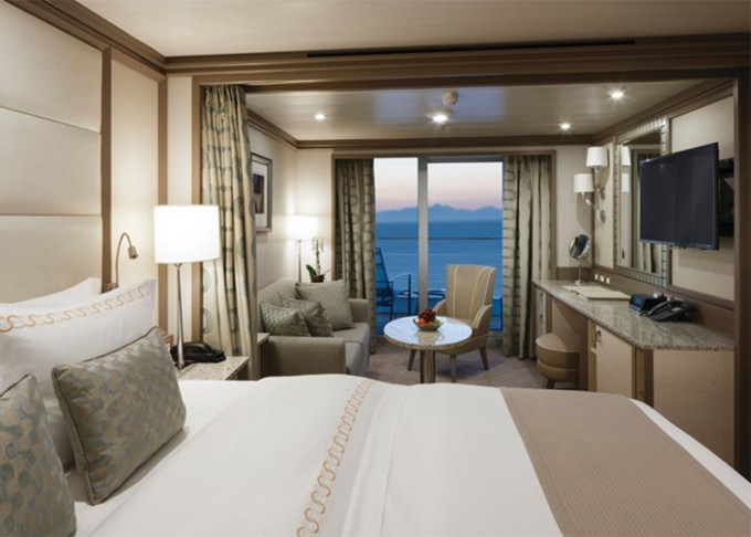 | SV - Superior Veranda Suite 29 m² + balkón 6 m². Spálňa s oddeliteľnou obývacou časťou. 7,8,9. vpredu. Max 3 osoby. | 13 825 € 13 825 € za osobu | ||